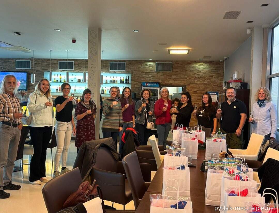 Jak se blížila hodina pátá odpolední, děvčat přibývalo. Kiki, Rosi, Marta a další, které jsme z části znali alespoň od vidění. Slečny i dámy, pilotky všelikerých vzdušných pohybovadel. Spousta dobré nálady, dárečky, dort, veselé historky ze života i z letectví...