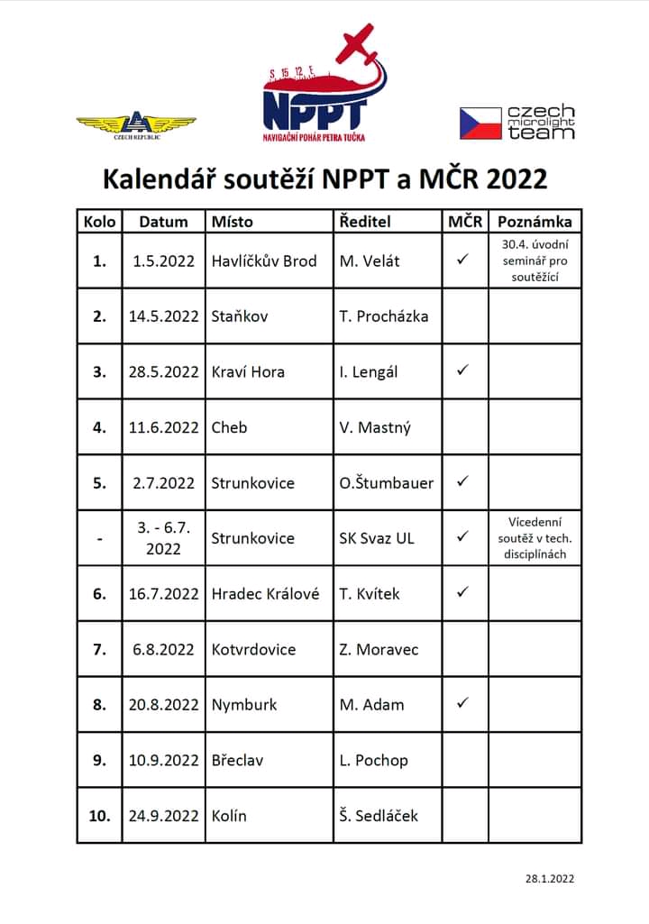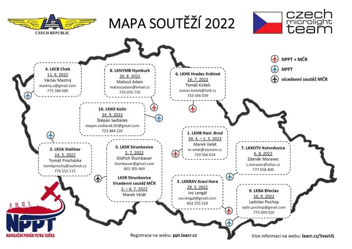 Mapa leteckých soutěží Navigačního poháru Petra Tučka...