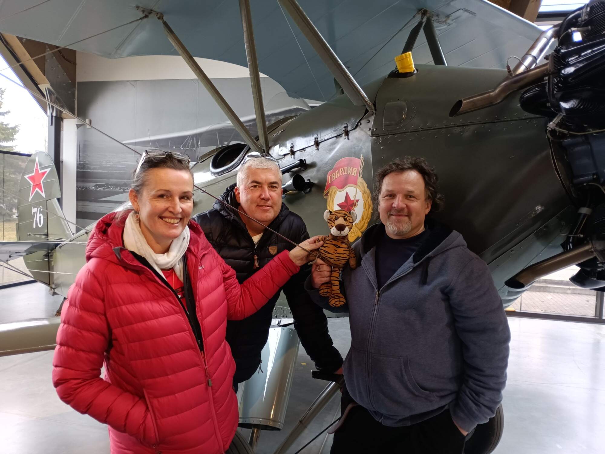 Za práci dobře odvedenou, které i tentokráte bylo přehršel (naši slovenští bratři by řekli nejspíš „po kokot“), přišla i zasloužená odměna. Prohlídka Středočeského leteckého muzea Metoděje Vlacha. Někteří jsme zde jako doma, i přesto se opět, zas a znovu, kdykoliv rádi podíváme do haly mezi nádherné poletuchy, mapující dlouhou historii dobývání vzduchu od prvních nesmělých krůčků a skoků, až do současnosti. Však i my přeci začínáme prvními krůčky a skoky. Navíc se učíme od dávných předků, přejímáme jejich objevy, rady, zvyky, v mnohých případech i pot a krev, abychom jejich odkaz přenesli na další generaci. Dětí i plyšáků. Však se Olin pustil okamžitě do zvídavého prohlížení naoko stařičkých strojů. Se zádumčivým mručením nahlížel do kabin, očichával vzpěry, zkoušel lanka, opatrně chodil po plátně. I ruku k dílu snažil se přiložit… Teda… Tlapku…
